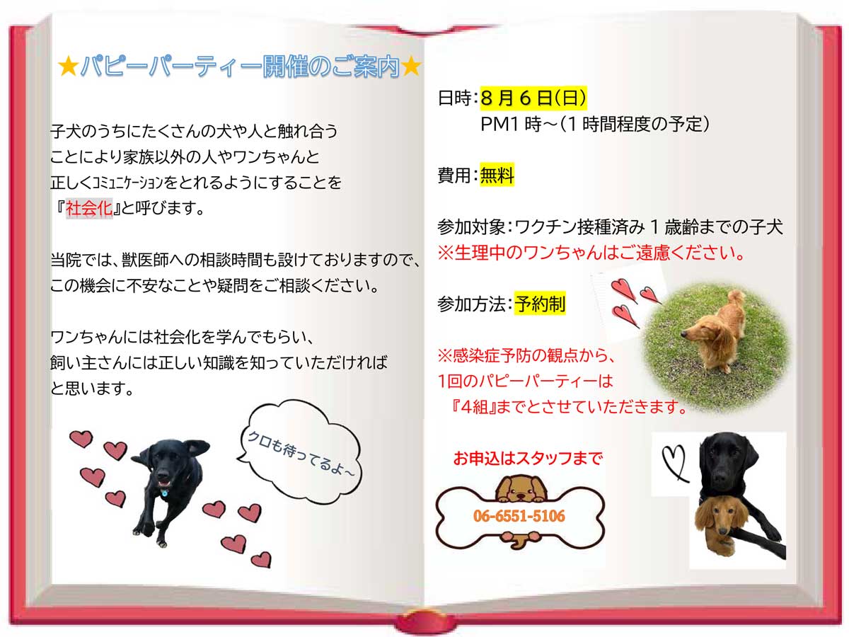 ※感染症予防の観点から、1回のパピーパーティーは『4組』までとさせていただきます。